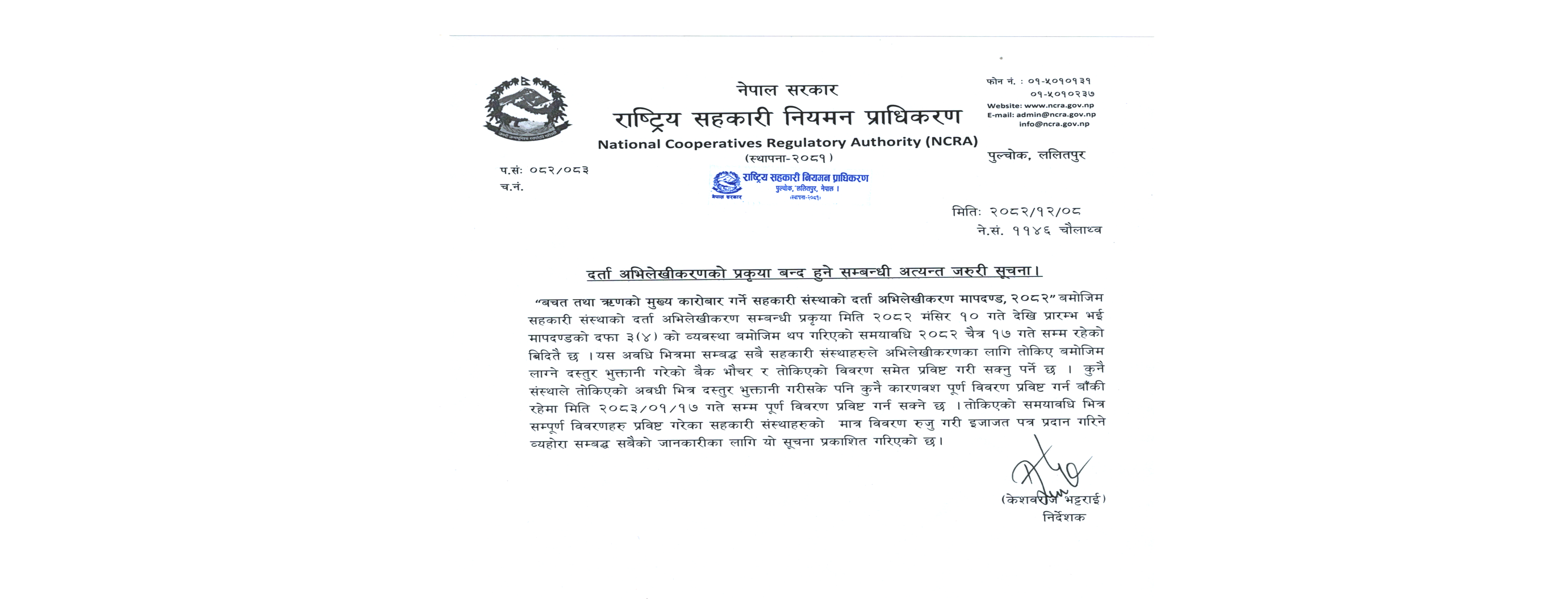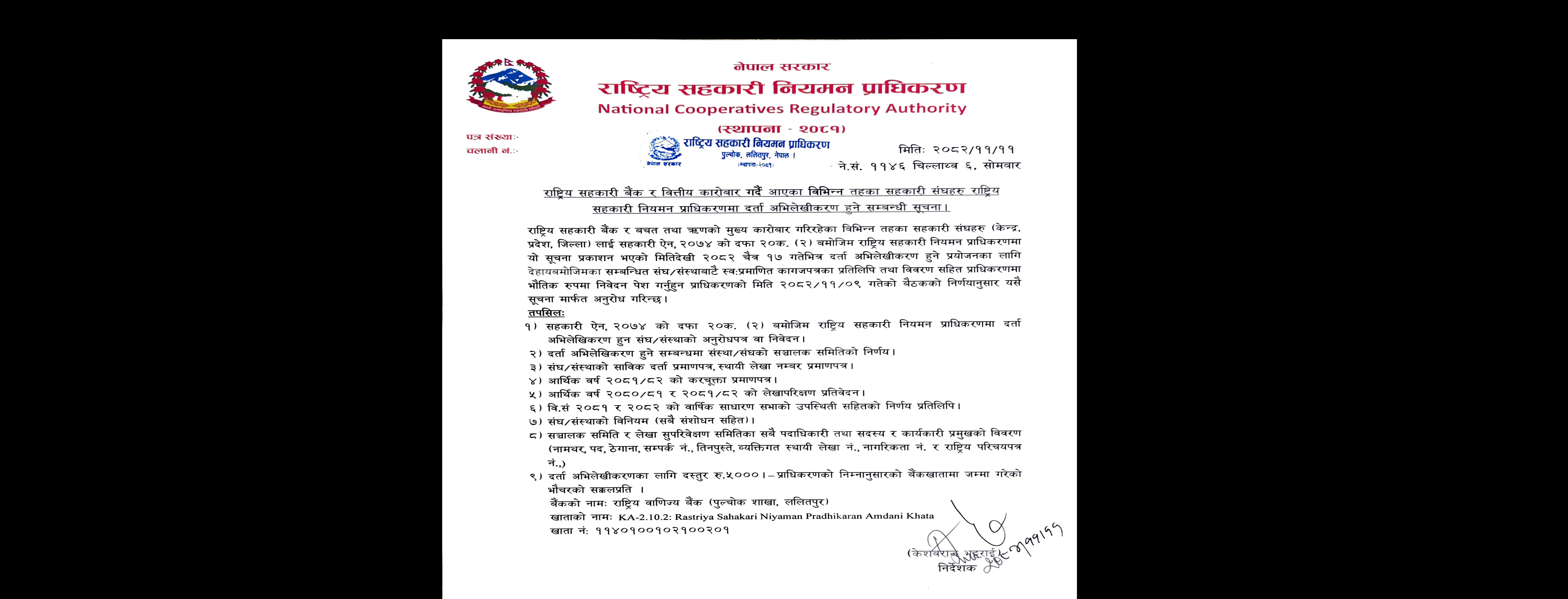 बचत तथा ऋणको मुख्य कारोवार गर्ने सहकारी संस्थाको नियमन गरी सुशासन कायम गर्ने ।